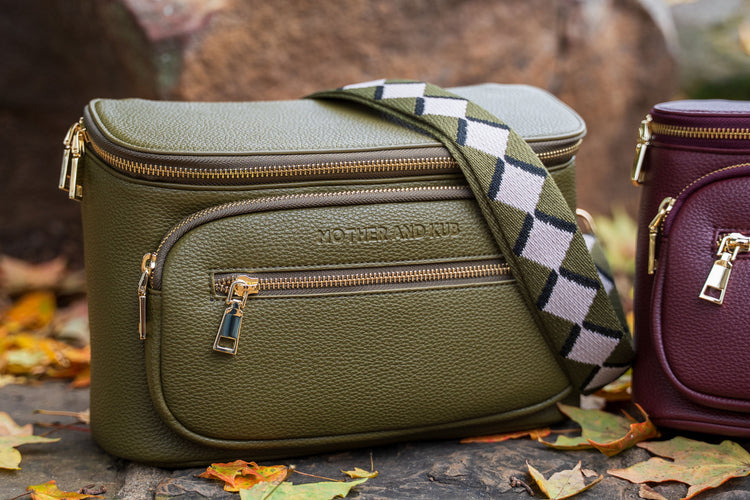 Zoey Crossbody Diaper Bag 2.0- Olive - Green + Taupe